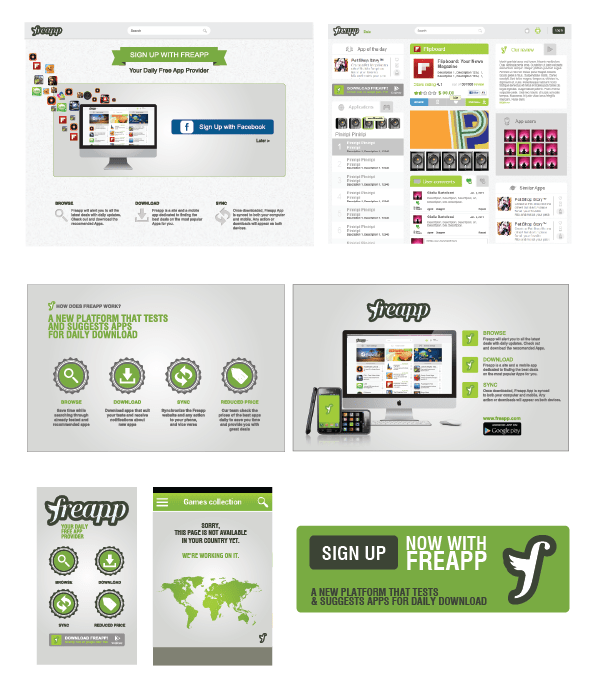 Layouts of websites, icons for buttons, phone interface designs and online banners during an internship at Nana Bianca in Florence, Italy.