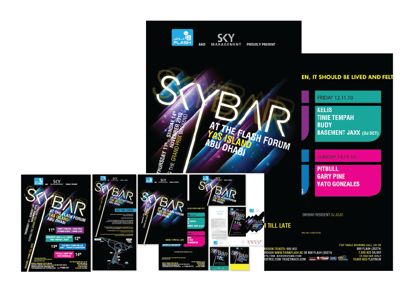 Concept and branding for Skybar Beirut, a famous nightclub for their Grand Prix Weekend event in Abu Dhabi, United Arab Emirates 2010. Designed while working at Inkblot Design Studio – Beirut, Lebanon